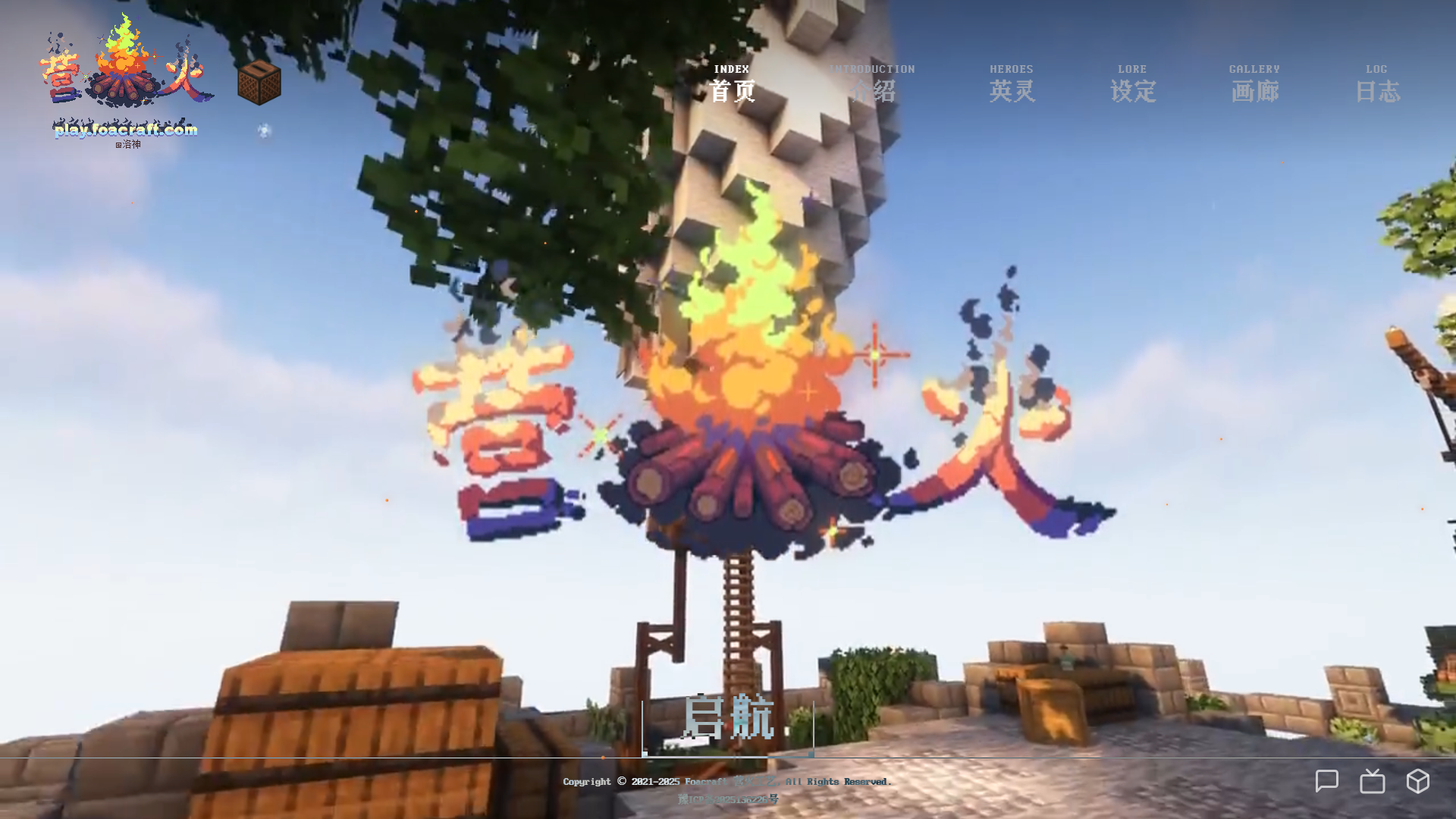 营火(Foacraft) Minecraft 服务器的官方网站。上面记载着服务器的英灵(也就是武器),还有一些背景故事和更新日志。